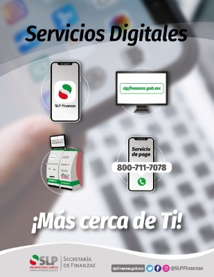 Cuidar la salud de las potosinas y potosinos es una prioridad para Gobierno del Estado, por ello se fortalecieron los canales de atención digitales al incluir la aplicación para celulares "SLP Finanzas" y la línea telefónica 800 7117078 sumados al sitio de internet slpfinanzas.gob.mx y los 16 centros electrónicos ubicados en plazas comerciales y presidencias municipales.