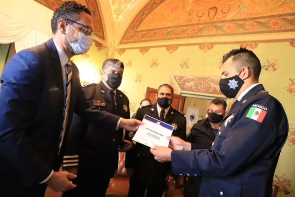 Quienes recibieron sus reconocimientos fueron: María Yoana Rea Osornio, jefa de la Unidad Especializada de la Policía Municipal para la Atención de la Violencia Familiar y Género; José Ricardo Flores Monroy, Policía 2º; Mauricio Roque Martínez, Policía 2º; y José de Jesús Téllez González, Suboficial.