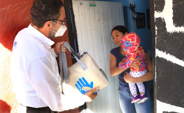 Los paquetes que recibieron constan de una mochila tipo pañalera, con 80 pañales, una manta, bolsa para desechos, paquete de toallitas húmedas, cambiador, lata de fórmula láctea para niños y un juguete.