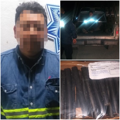 Presuntamente el sujeto hurtó cableado de cobre y trató de sacarlo de la empacadora ocultos en sus botas, sin embargo fue descubierto por los guardias privados, quienes enseguida pidieron apoyo a los policías municipales.