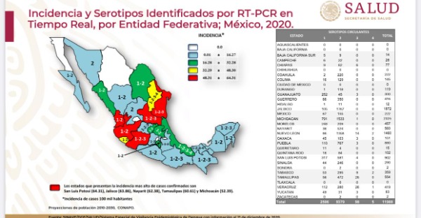 La Subsecretaría de Prevención y Promoción de la Salud, a través de la Dirección General de Epidemiología del Gobierno Federal informó mediante las estadísticas de la semana 51 epidemiológica que San Luis Potosí encabeza la incidencia de Dengue en todo el país con un 64.31 por ciento.