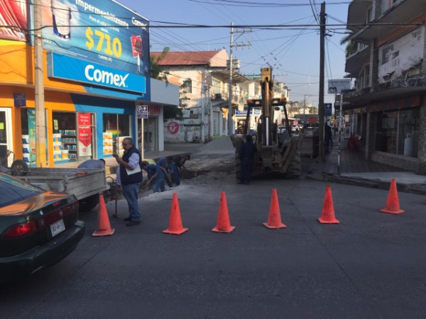 El colapso en una tubería de agua que se ubica en la calle Madero casi esquina con Juárez, mantiene cerrada la vía al tráfico vehicular, debido a los trabajos de reparación que ahí la DAPA, lo que se esperaba complicara la circulación que es estos días aumenta considerablemente.