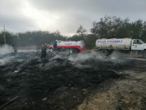 El incendio ocurrió cerca de las seis de la mañana en una llantera ubicada a cuatro kilómetros de la ciudad, a un costado de la carretera Rioverde-Valles, a la altura de la comunidad de Miguel Hidalgo, cuyas llamas alcanzaron las líneas de alta tensión.