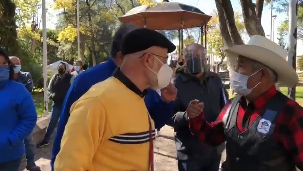 Sin embargo, la violencia imperó en uno de ellos quien de manera salvaje le arrebató su cartel sin importarle los jaloneos en contra del abuelito.