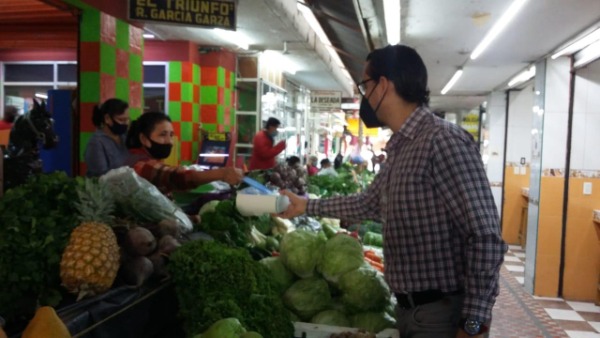 El doctor Manuel Guerrero Camacho, titular de la dirección, señaló que el personal adscrito realiza visitas frecuentes a vendedores, locatarios y tianguistas a fin de que usen cubrebocas, gel antibacterial y de forma aleatoria toman la temperatura.