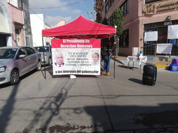 "No somos víctimas de segunda", reprocharon las victimas al presidente de CEDH, López Espinosa, a través de lonas.