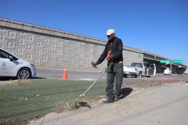 Trabajadores delegacionales de la citada área intervinieron más de 15 mil metros cuadrados que abarcaron el tramo del puente de entrada a La Pila al Centro Penitenciario de Readaptación Social (CEPRERESO), en ambas laterales.