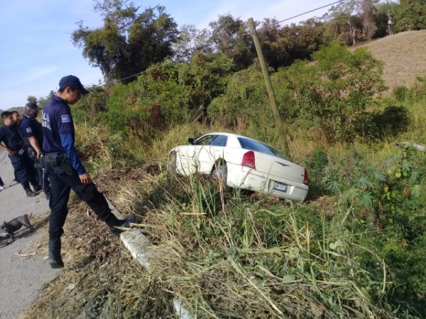 Un vehículo marca Chrysler 300 color blanco, se salió de la carretera y acabó en un desnivel, pero afortunadamente el conductor, identificado como Antonio G. de 23 años de edad, originario de la Ciudad de México, resultó ileso.