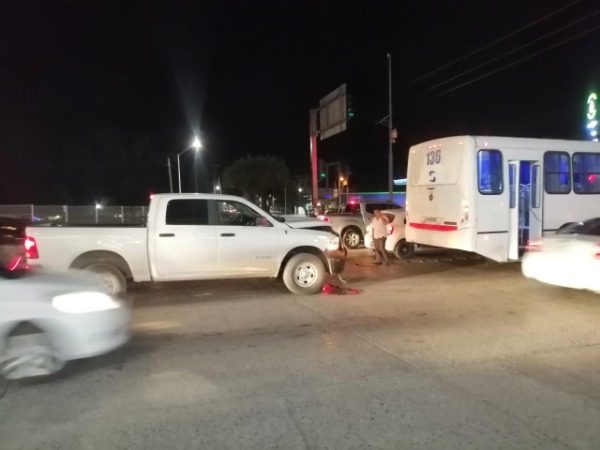 Debido a la falta de precaución, una mujer que manejaba una camioneta Dodge RAM color blanco, chocó contra la parte trasera del autobús 136 ruta Ecocentralita-El Sol, en la Intersección de los Bulevares.