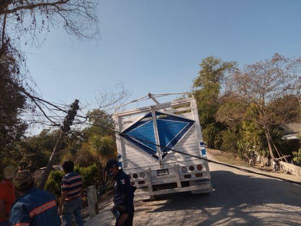 La Dirección de Seguridad Pública y Tránsito Municipal informó que una camioneta Chevrolet blanca, de doble rodada y con redilas, derribó un poste de la Comisión Federal de Electricidad, y cableado.