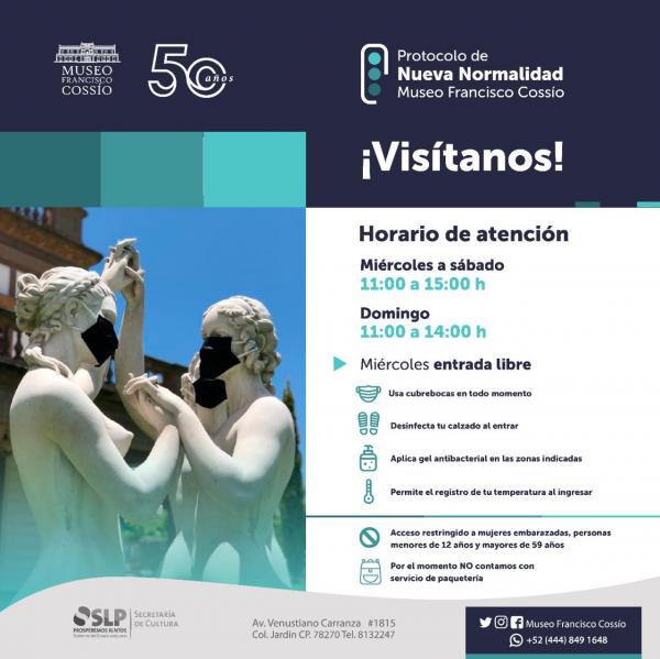 La Secretaría de Cultura de San Luis Potosí (SECULT), invita a participar en las actividades que realiza el Museo Francisco Cossío, tanto de manera virtual como presencial, a la par de reforzar sus medidas sanitarias durante el periodo de contingencia por el Covid-19, informó el titular de la dependencia, Armando Herrera Silva.