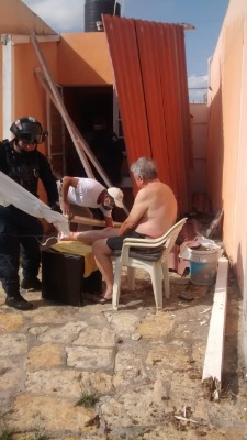 El afectado fue Gustavo A. de 71 años de edad, quien se encontraba en la azotea de su casa, con una lesión en la pierna derecha.