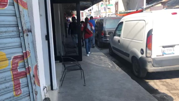 Fue así como otros trabajadores la auxiliaron para llegar al consultorio médico de una farmacia cercana, sobre la misma calle, en donde sería atendida.