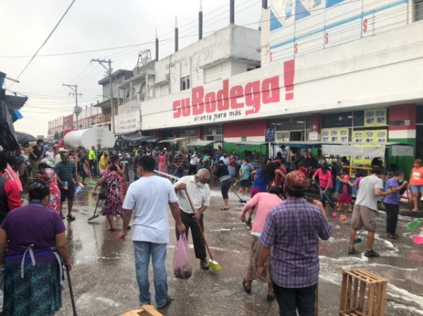 Cabe señalar que en las acciones de lavado se pudo ver a una importante cantidad de personas, con escobas entre las que se pudieron ver a comerciantes, tianguistas y autoridades municipales.