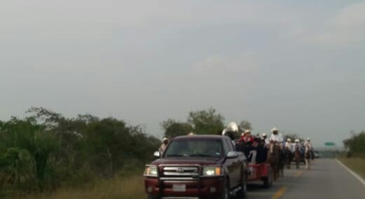 De ahí salieron a caballo rumbo al ejido Laguna del Mante, sobre la carretera federal 85, ante el asombro de algunos automovilistas que iban de paso, quienes saben que por la contingencia sanitaria, no están permitidos estos eventos.