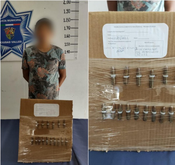 Entre sus pertenencias traía 16 cartuchos útiles calibre 30 x 72, y no traía ningun permiso para poseerlos ni portarlos, por ese motivo fue detenido y puesto a disposición de la Fiscalía General de la República.