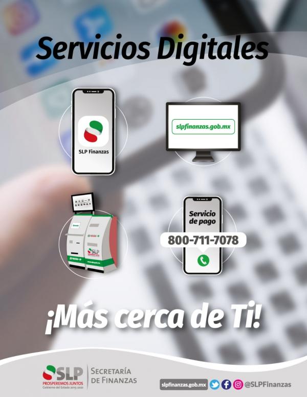 Por tal motivo se hace un llamado a las y los potosinos a realizar los pagos a través de los canales electrónicos como la Aplicación Móvil "SLP Finanzas", el sitio web slpfinanzas.gob.mx, así como en la línea telefónica 800 711 7078 y sucursales bancarias.