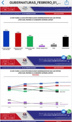 En el segundo sondeo realizado por Massive Caller, si hoy fuera la elección para gobernador de San Luis Potosí, Octavio Pedroza Gaitán se ubica en primer lugar con 29.5% por parte de la coalición "Sí por San Luis Potosí" encabezada por los partidos PAN, PRI, PRD y Conciencia Popular.