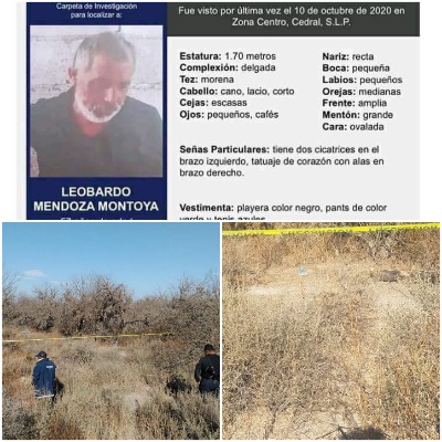 Según informes proporcionados por familiares, el ahora occiso respondia al nombre de Leobardo M, de 57 años de edad, quien tenia reporte de desaparicion desde el pasado 10 de octubre de 2020.