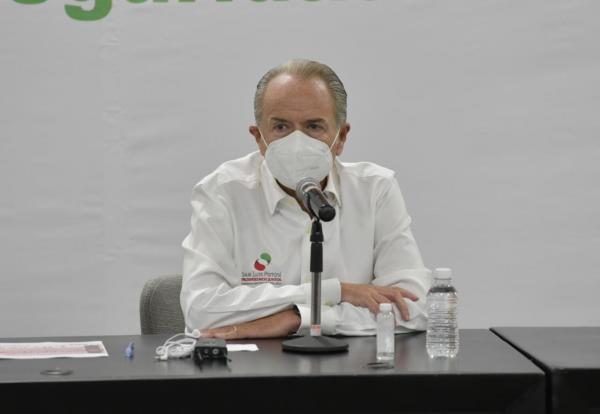 Durante la rueda de prensa virtual del Comité Estatal para la Seguridad en Salud (CESS), el Gobernador, Juan Manuel Carreras López, dio a conocer que San Luis Potosí continúa con un alto riego de contagio por COVID 19 y podría regresar a semáforo naranja el próximo lunes, una vez que las autoridades federales lo confirmen, en tanto, reiteró la importancia del esfuerzo colectivo para reducir la propagación del virus acatando los protocolos sanitarios.