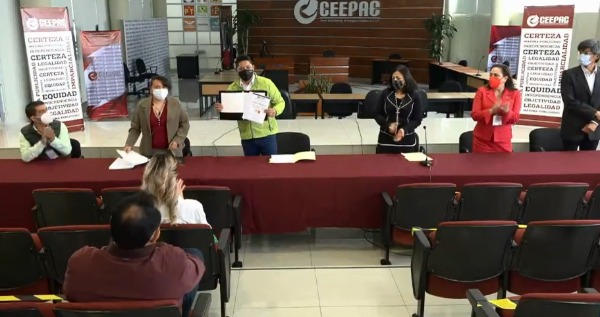 La secretaria ejecutiva del Ceepac recibió la solicitud de registro ya nexos del candidato a la gubernatura.