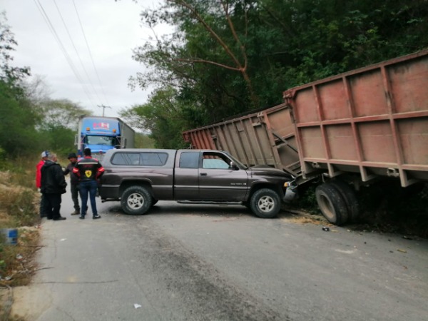 Supuestamente conductor de la camioneta circulaba con dirección de Valles al Naranjo e intentó rebasar a un full tráiler que iba despacio.