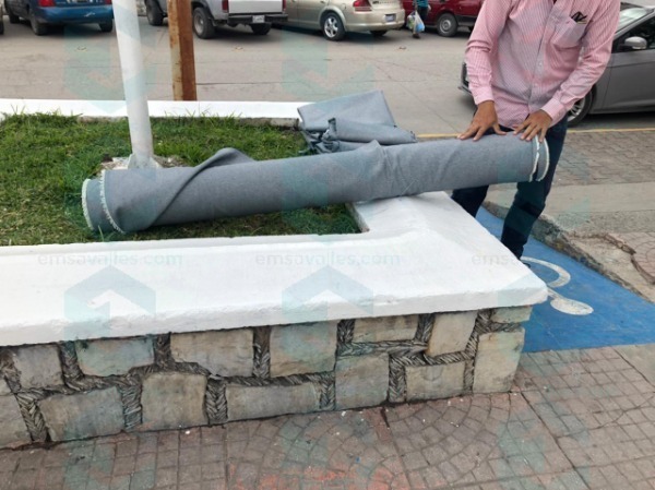 Tela de mezclilla para que cambien la que tienen en sus toldos ahora que le les donaron lonas nuevas, obsequió esta mañana Patricia Lobatón Palacios, Directora de cultura del ayuntamiento local, a todos los aseadores de calzado que se encuentran en la plaza principal.