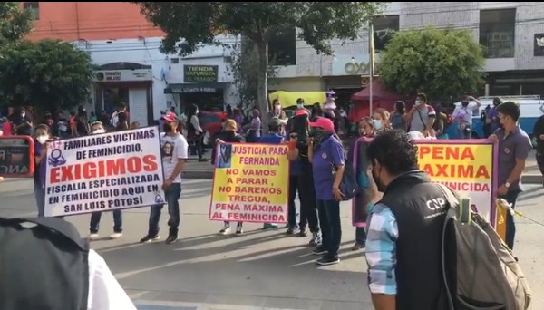 Familiares de Fernanda Guadalupe Morán Rodríguez, víctima de feminicidio en San Luis Potosí marcharon por las calles del primer cuadro de la ciudad.