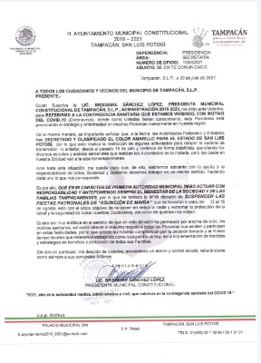 De esa misma manera se pide a la población a seguir cuidando y respetando las medidas de salud", lo anterior, a fin de coadyuvar con las estrategias sanitarias que ayuden a bajar los índices de contagios y decesos por esta enfermedad en el estado potosino.
