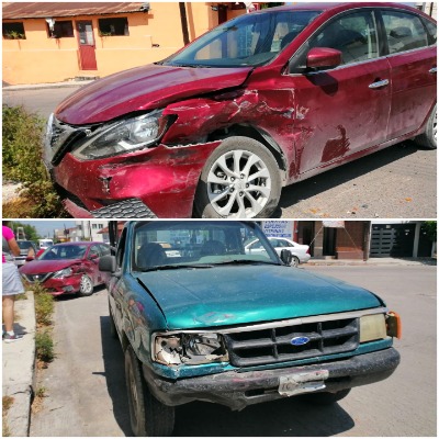 Pues iba sobre la calle Madero y al llegar la mencionado cruce no hizo alto, por eso chocó contra un vehículo Nissan Sentra color guinda, modelo reciente, conducido por Cinthya Dayana S. de 50 años, quien resultó con algunos golpes, pero no quiso ser llevada a un hospital.