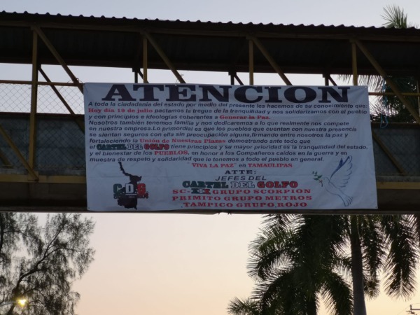 Es similar a las que aparecieron ayer en los municipios de Matehuala, Cedral y Villa de Reyes, donde se expone un acuerdo de paz entre tres facciones de un grupo delictivo.