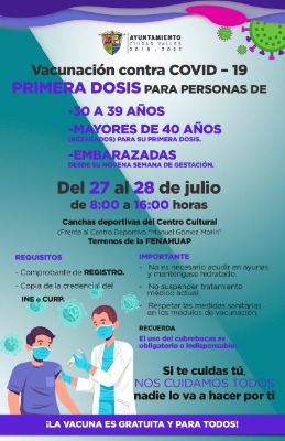 Los grupos son: personas de 30 a 39 años de edad, rezagados de otros grupos de edad, así como mujeres embarazadas desde su novena semana de gestación.