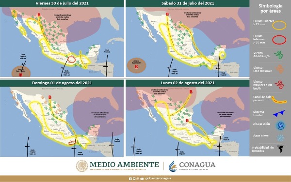 La Conagua y el SMN exhortan a la población a mantenerse informada sobre las condiciones meteorológicas mediante las páginas de internet www.gob.mx/conagua y http://smn.conagua.gob.mx , así como en las cuentas de