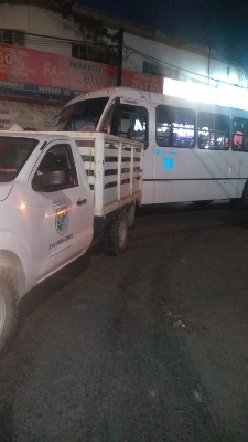 Tuvo la culpa el chofer del autobús número 26 de la ruta Ecocentralita - 20 de Noviembre, quien iba sobre la calle Madero y al llegar al cruce con Abasolo, vio que estaba orillada una camioneta marca Nissan color blanco, del Ayuntamiento, y usada para la recolección de basura, la cual le obstruía la circulación, pero aún así quiso pasar, y terminó dándole un golpe.