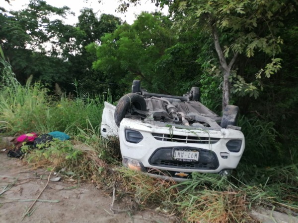 Esta mañana bajando del puente Cascabel, en el bulevar Lázaro Cárdenas, se registró la volcadura de un vehículo marca Chevrolet Beat blanco.