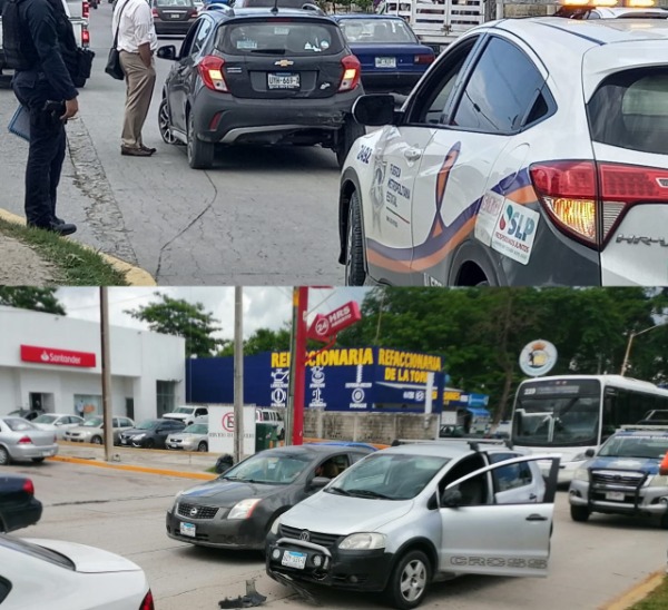 Por otro lado también en el mismo bulevar, pero cerca del cruce con la avenida Salazar, una mujer que traía un Nissan Sentra gris, chocó contra la parte trasera de un auto Chevrolet Spark gris.