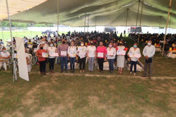 En San Vicente Tancuayalab, acompañada del Alcalde, Jesús Josué Soni Cortes; Flor María Meraz González, Presidenta del DIF; así como Presidentas de los Sistemas Municipales de la región, también entregó bicicletas a estudiantes de comunidades.