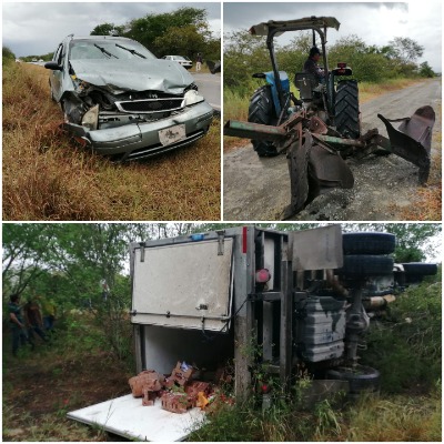Pero delante iba despacio un tractor, a baja velocidad, y el conductor del auto no alcanzó a frenar, lo chocó por alcance. El auto se salió del camino a la derecha y el chofer del tractor perdió el control del volante y cruzó el carril contrario.