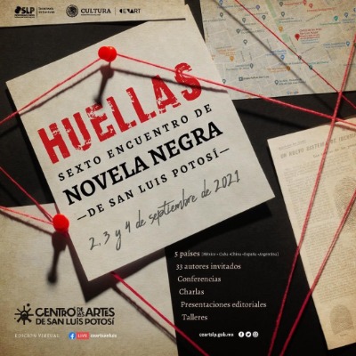 La Secretaría de Cultura y el Centro de las Artes de San Luis Potosí preparan el Encuentro Internacional de Novela Negra, Huellas 2021 que, teniendo en esta ocasión a Argentina como invitado especial, tendrá lugar del 02 al 04 de septiembre próximos, ofreciendo al público diversas actividades de acercamiento y difusión de este género literario, todas ellas en formato virtual a través de las plataformas digitales del Ceart San Luis.