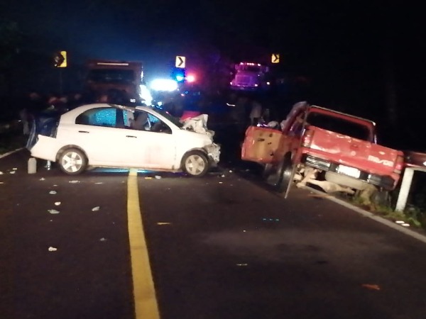 Esta noche en el kilómetro 50 de la carretera libre Valles-Rioverde, a la altura del lugar conocido como El Serranito, se registró un fuerte choque.