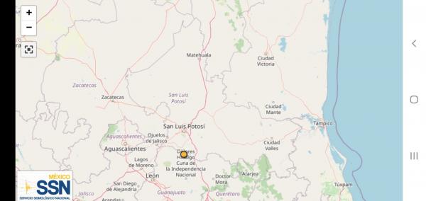 El fenómeno se registró a las 5:35 horas, con una magnitud de 4.3, con epicentro en las coordenadas Latitud 21.68° Longitud -101.00°, a una profundidad de 5 kilómetros.