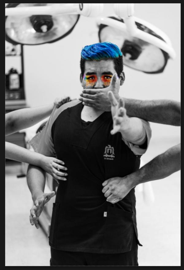 Alfredo Uresti comentó que la temática de su fotografía, titulada "Barreras sociales deteniendo los colores" fue realizada en técnica de blanco y negro, y representa la exclusión que existe por parte de la misma comunidad hospitalaria hacia el personal de salud, "todavía existe ese sentimiento de opresión hacia las personas LGBTQ y también hacia el personal femenino que se llega a manifestar en algunas instituciones que son muy importantes".