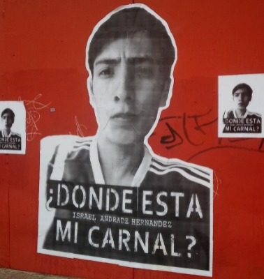 En un inmueble aparentemente abandonado ubicado entre la calle Diaz de León e Independencia sobre la puerta color rojo aparecieron los stickers de diferentes tamaños, en estos se aprecia la imagen de uno de los jóvenes desaparecidos con la leyenda ¿Dónde está mi carnal?