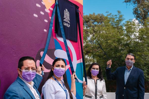 Atestiguo y develó placa de esta obra el rector de la UASLP, Dr. Alejandro Zermeño Guerra, acompañado del Dr. Omar Sánchez Armáss- Capello director de la Facultad de Psicología; la Dra. Patricia Arce Villalobos presidenta del comité de Damas Voluntarias, y la Dra. Guadalupe Olvera León coordinadora del Centro Educativo "El País de las Maravillas".