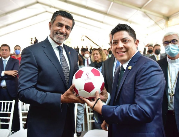 Gallardo Cardona recibió de manos de Mohammed Alkuwari un balón de futbol conmemorativo de la próxima justa, el cual, dijo el Gobernador del Estado, es un símbolo de hermandad y de buena voluntad para trabajar de la mano más allá de la justa deportiva.