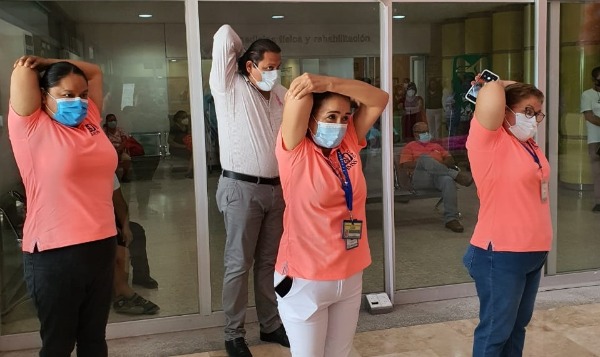 Durante esos días se han estado realizando actividades físicas con el personal del área de enfermería, trabajo social, entre otros, ejercicios que son fáciles de realizar en casa, destacando la autoexploración para que así, de manera periódica, puedan revisarse y detectar cualquier anomalía.