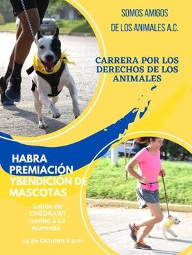 Una carrera por los Derechos de los Animales se llevará a cabo este 24 de octubre a partir de las 8 de la mañana, misma que partirá de Chedraui rumbo a la alameda municipal.