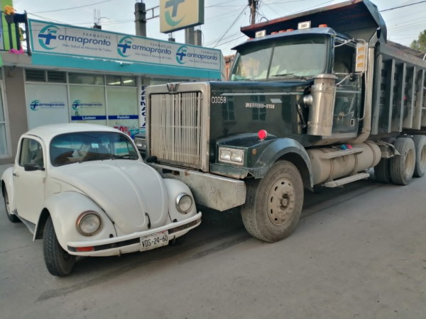 Esta mañana se registró un choque en el cruce de las calles Escontría y Galeana en la zona centro, en donde estuvo involucrado un camión color verde, tipo torthon, propiedad del Gobierno Municipal.