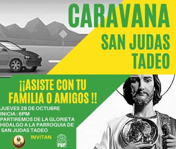 Con el objetivo de conmemorar al patrono de las causas difíciles, San Judas Tadeo, este 28 de octubre se llevará a cabo una caravana vehicular que iniciará en la glorieta Hidalgo.