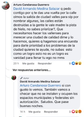 El comerciante Arturo Candanosa, de esta ciudad, dice sentirse amenazado por el edil Vallense, David Armando Medina Salazar, luego de que le redactara en sus redes sociales que era innecesaria una pista de hielo, a lo que él, le respondió de forma no favorable.